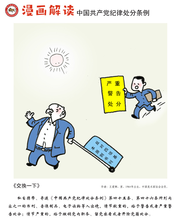 紀(jì)律是我們黨的生命線(xiàn),加強(qiáng)紀(jì)律建設(shè)是全面從嚴(yán)治黨的治本之策。為深入貫徹落實(shí)十九屆中央紀(jì)委四次全會(huì)關(guān)于加強(qiáng)黨紀(jì)國(guó)法教育的部署要求,強(qiáng)化黨規(guī)黨紀(jì)的學(xué)習(xí)宣傳、貫徹執(zhí)行,使鐵的紀(jì)律真正轉(zhuǎn)化為黨員干部的日常習(xí)慣和自覺(jué)遵循,中央紀(jì)委國(guó)家監(jiān)委網(wǎng)站聯(lián)合河北省紀(jì)委監(jiān)委,以漫畫(huà)形式對(duì)《中國(guó)共產(chǎn)黨紀(jì)律處分條例》進(jìn)行解讀。