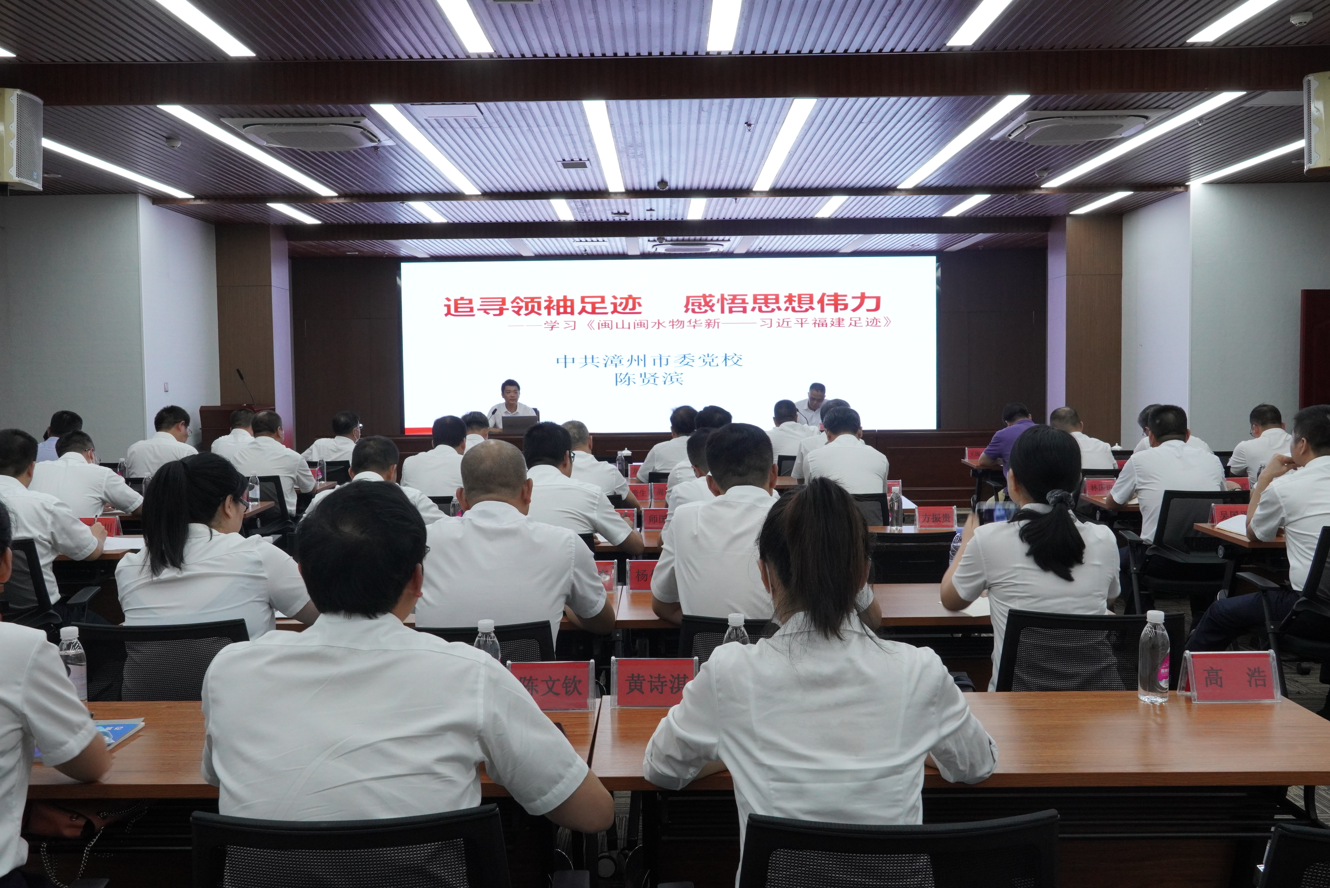 此次培訓邀請中共漳州市委黨校哲學法學教研室主任、副教授陳賢濱同志以《追尋領袖足跡 感悟思想偉力》為題,重點學習《閩山閩水物華新——習近平福建足跡》,從“為何學、學什么、怎么學”等三個方面,深入淺出地闡述了習近平同志為福建改革開放和現代化建設事業(yè)所作出的一系列極具前瞻性、開創(chuàng)性、戰(zhàn)略性的理念創(chuàng)新和實踐探索。本次專題講座主題鮮明、內涵豐富、思想深刻,對集團領導干部更好地學習習近平新時代中國特色社會主義思想具有很強的指導作用。