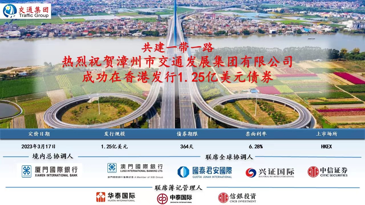 ????漳州市交通發(fā)展集團有限公司成功在香港發(fā)行1.25億美元債券