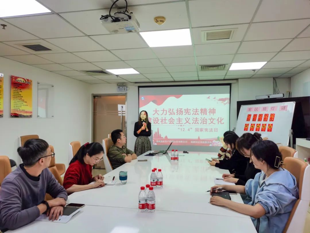 組織開展以“大力弘揚(yáng)憲法精神,建設(shè)社會(huì)主義法治文化”主題活動(dòng),邀請(qǐng)福建國(guó)遠(yuǎn)律師事務(wù)所徐艷微律師針對(duì)憲法、民法典等相關(guān)法律知識(shí)進(jìn)行宣講,并開展法律知識(shí)燈謎競(jìng)猜活動(dòng)。
