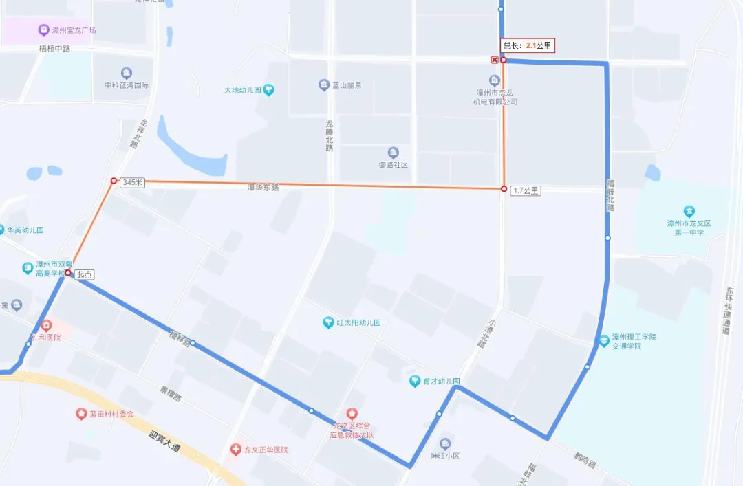 雙向取消檀林路運營,改道龍祥北路、漳華東路、小港北路運營。(圖紅色線為臨時改道部分)