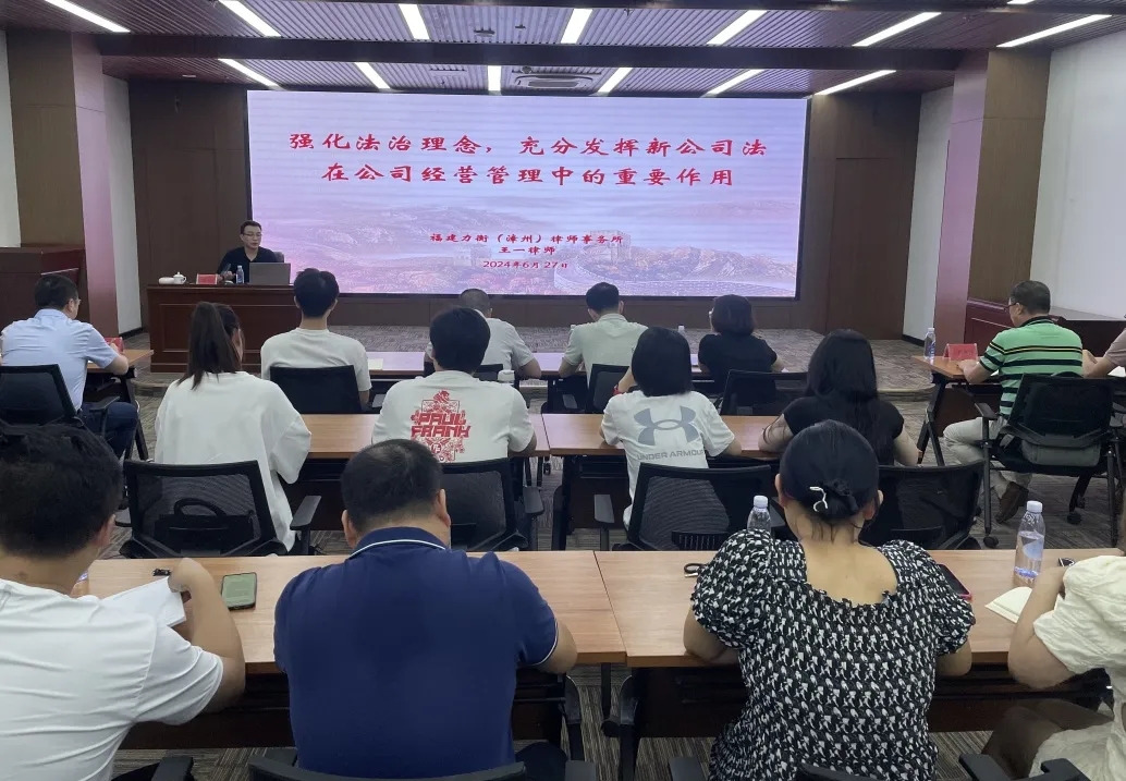 培訓會邀請了福建力衡(漳州)律師事務所王一律師進行授課,培訓內容圍繞新公司法的有關規(guī)定展開。會上,王律師針對企業(yè)組織機構的設立、日常經營合規(guī)管理、投資領域的風險管控等方面進行詳細講解,并結合工作實際分享相關投資案例,通過典型案例引導大家增強紀律意識和法治思維。