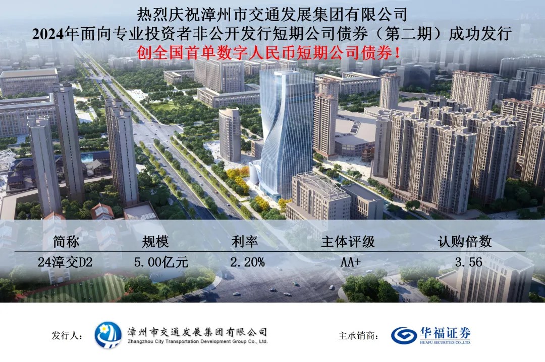 漳州交通集團(tuán)5億元數(shù)字人民幣債券(私募短債)成功發(fā)行