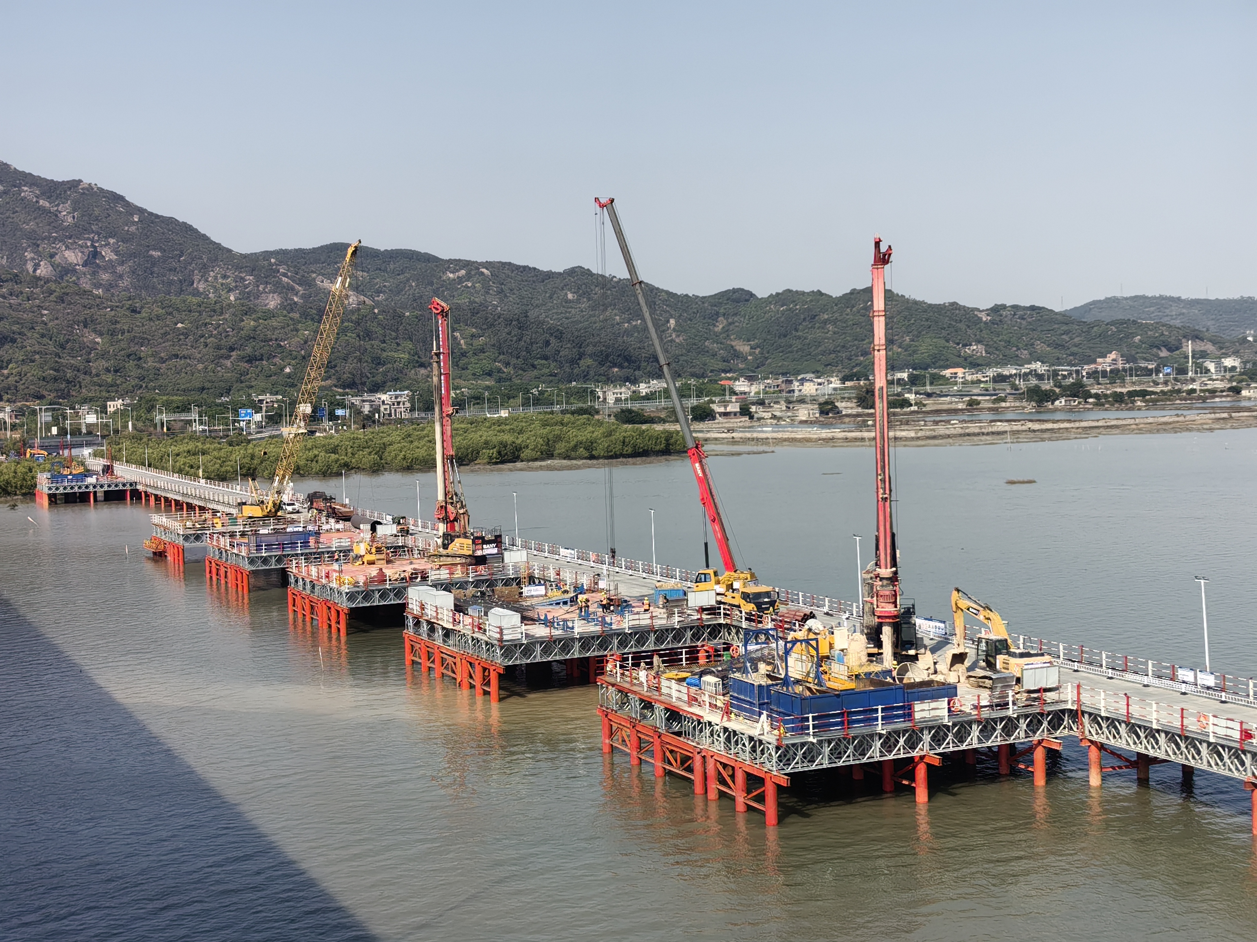 在各方的共同努力下,漳汕高鐵(福建段)3標(biāo)全線已累計(jì)完成樁基975根,承臺(tái)88個(gè),墩身71個(gè),海上鋼棧橋完成3168米,隧道正在進(jìn)行進(jìn)洞施工前的準(zhǔn)備工作。