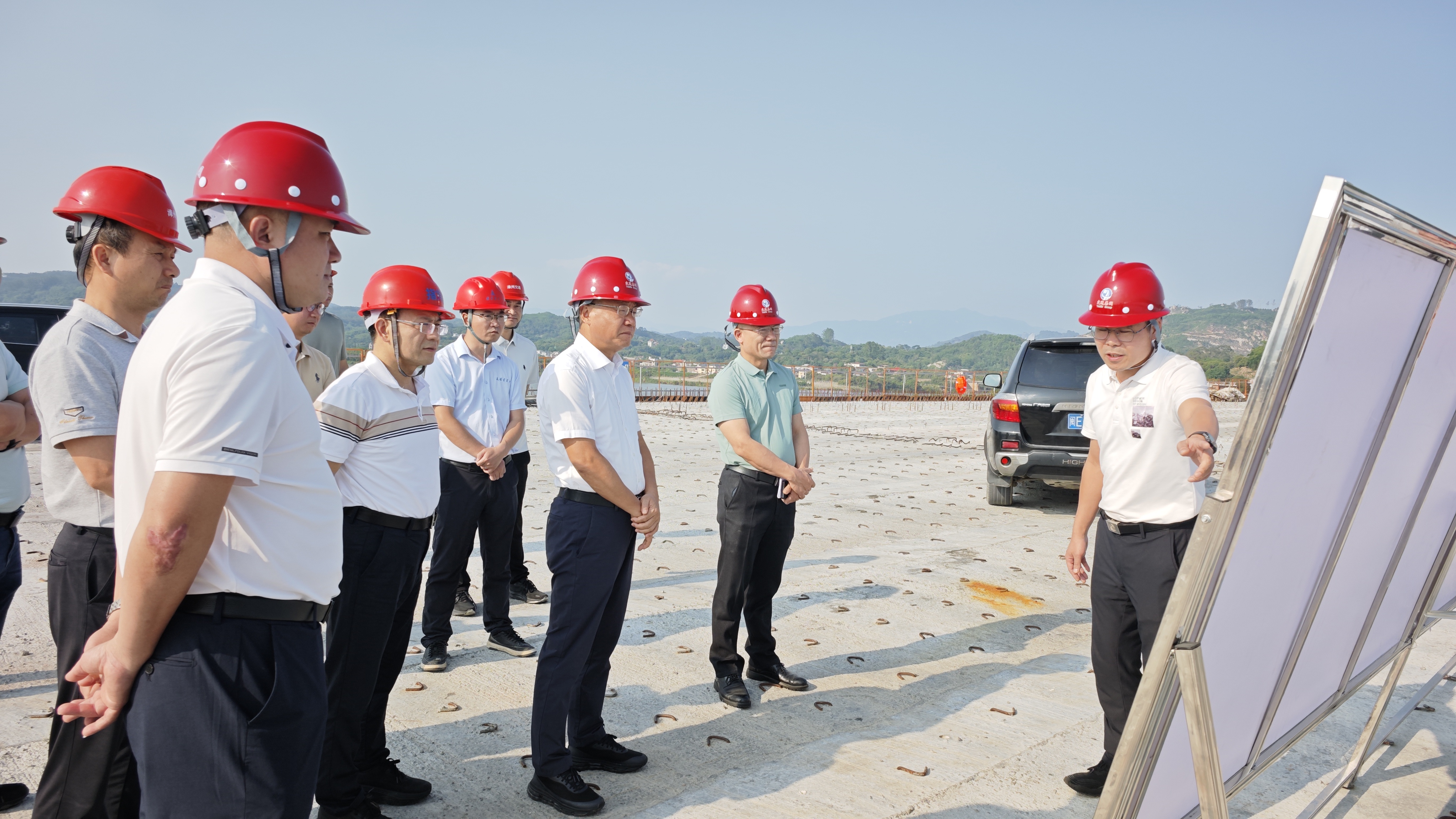 調(diào)研組一行深入漳濱特大橋施工現(xiàn)場(chǎng),實(shí)地察看項(xiàng)目建設(shè)情況,認(rèn)真聽取建設(shè)單位負(fù)責(zé)人關(guān)于項(xiàng)目進(jìn)展的匯報(bào),詳細(xì)了解項(xiàng)目推進(jìn)過程中存在的困難和問題,并提出相關(guān)意見建議,強(qiáng)調(diào):