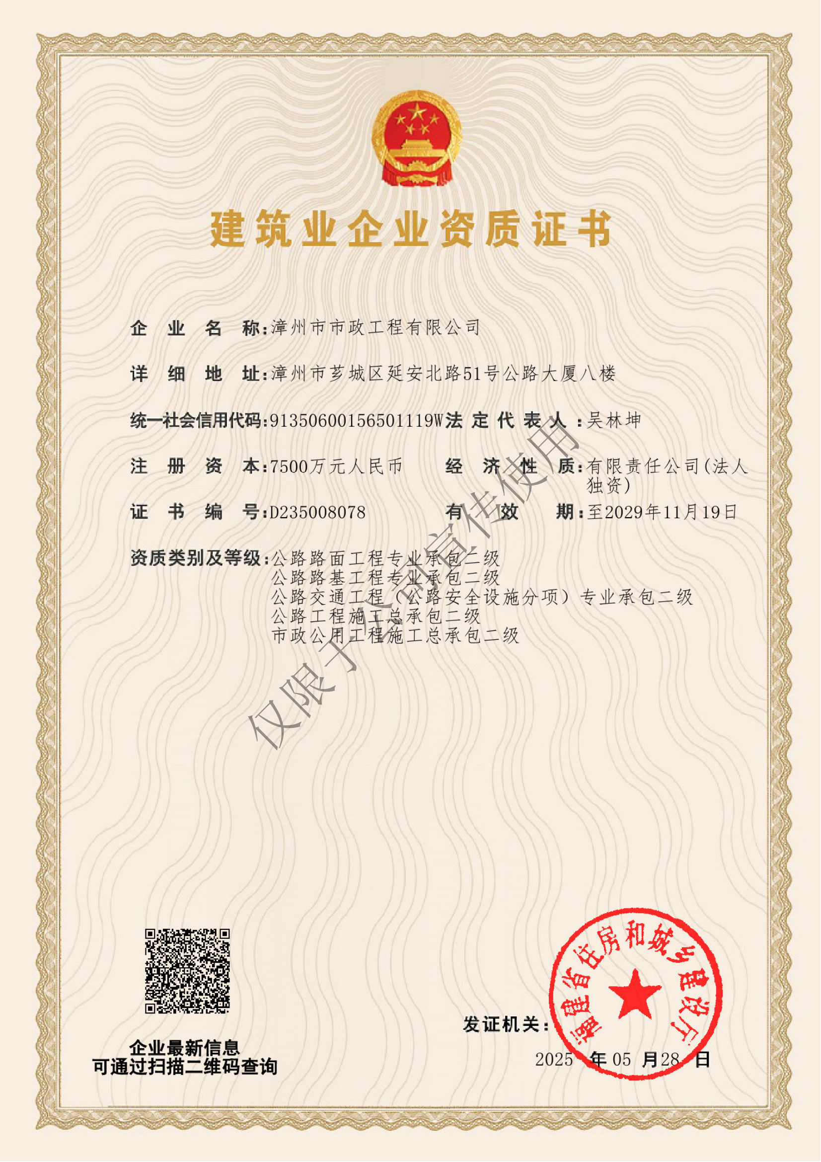 截至目前,市政公司已擁有涵蓋公路工程、市政工程及專項(xiàng)領(lǐng)域的多項(xiàng)核心資質(zhì),具體包括: