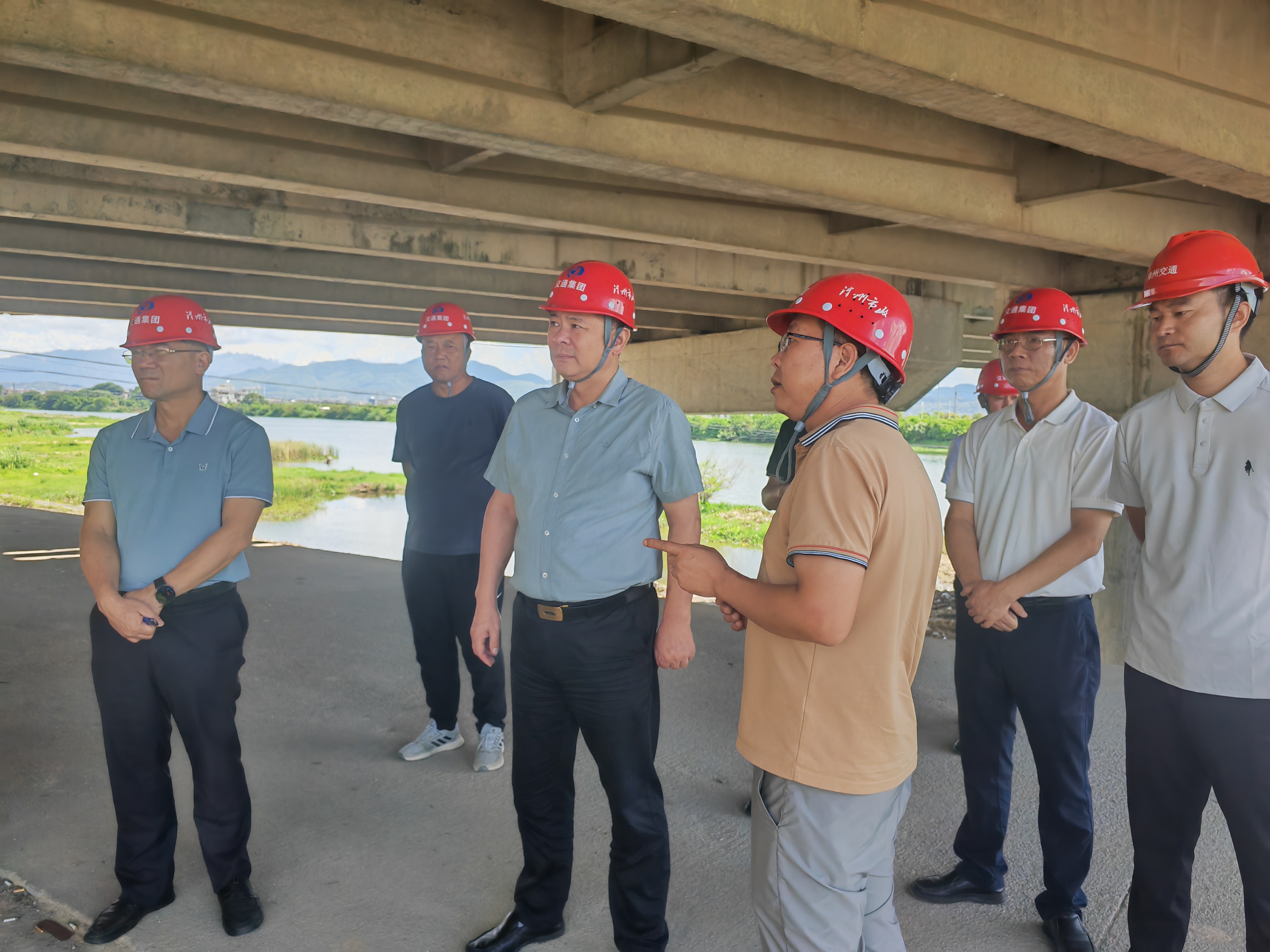 6月27日,漳州交通集團(tuán)黨委書記、董事長方泗平帶隊(duì)到交發(fā)建設(shè)集團(tuán)市政公司承建的詔安縣江濱路公路工程施工現(xiàn)場開展調(diào)研。