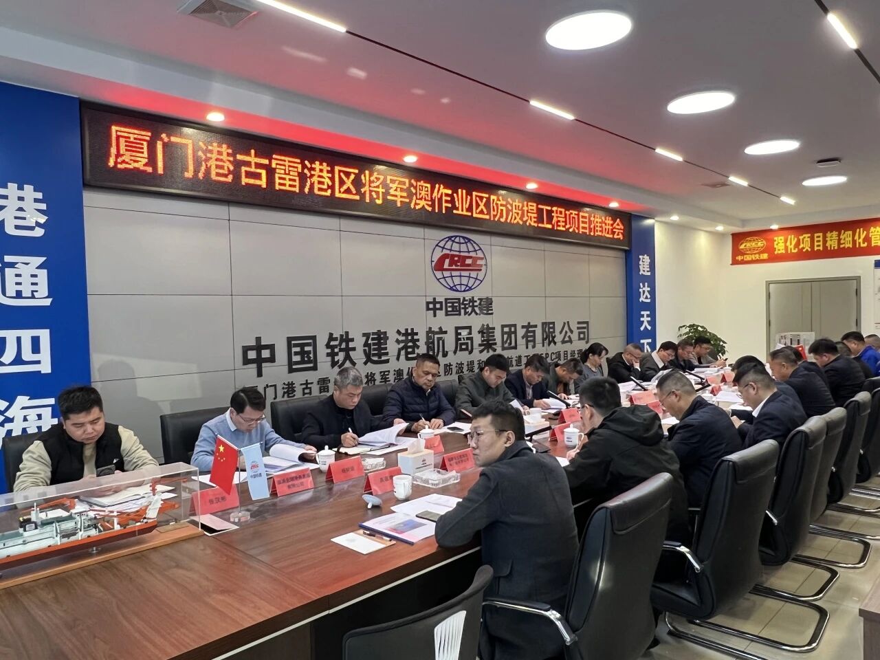 會議邀請廈門港口管理局、漳州協(xié)調(diào)中心、廈門港水運(yùn)工程質(zhì)量安全中心等單位人員與會。漳州交通集團(tuán)黨委副書記、總經(jīng)理林長河,漳州交通集團(tuán)黨委委員、副總經(jīng)理常彬彬,中國鐵建集團(tuán)港航局總經(jīng)理王永東參加會議。