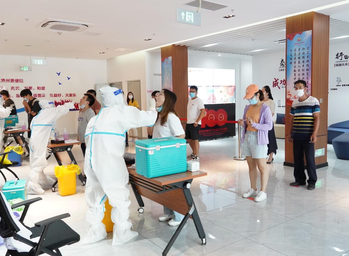 現(xiàn)場,集團綜合部工作人員按照疫情防控要求,引導(dǎo)待檢員工,分批分組有序排隊,確保核酸檢測工作高效開展。